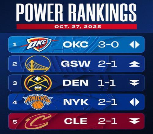 雷速体育10月28日宣 NBA官方根据新赛季首周联盟各队的表现,公布了第二期球队实力榜,以下为具体名单: