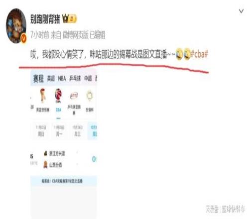 目前,距离CBA新赛季揭幕战开打只剩下1天的时间,按照以往,CBA新赛季的转播赛程早就出炉了。可截止到目前,某咕的新赛季转播计划中,他们虽然安排了揭幕战广厦对阵山西的转播预约。可根据预约显示来看,某咕安排的揭幕战转播,其实是文字转播。换句话说,他们并没有转播广厦与山西揭幕战的计划。对于喜欢CBA的球迷,他们想要看CBA揭幕战,就只能通过央视了。