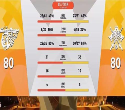 上半场广东凭借胡明轩节末阶段的关键3+1,艰难取得56-55领先。