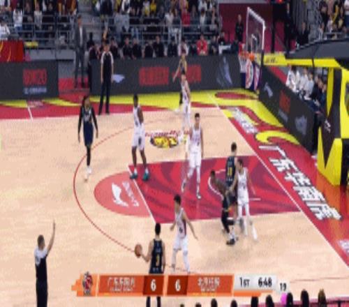 7分37秒,胡队长不信邪继续强杀终于制造2+1,一回合后杜润旺反击飚进三分,胡明轩终于打开得分账户,果断命中外线三分连得6分,广东9-0反超北控。